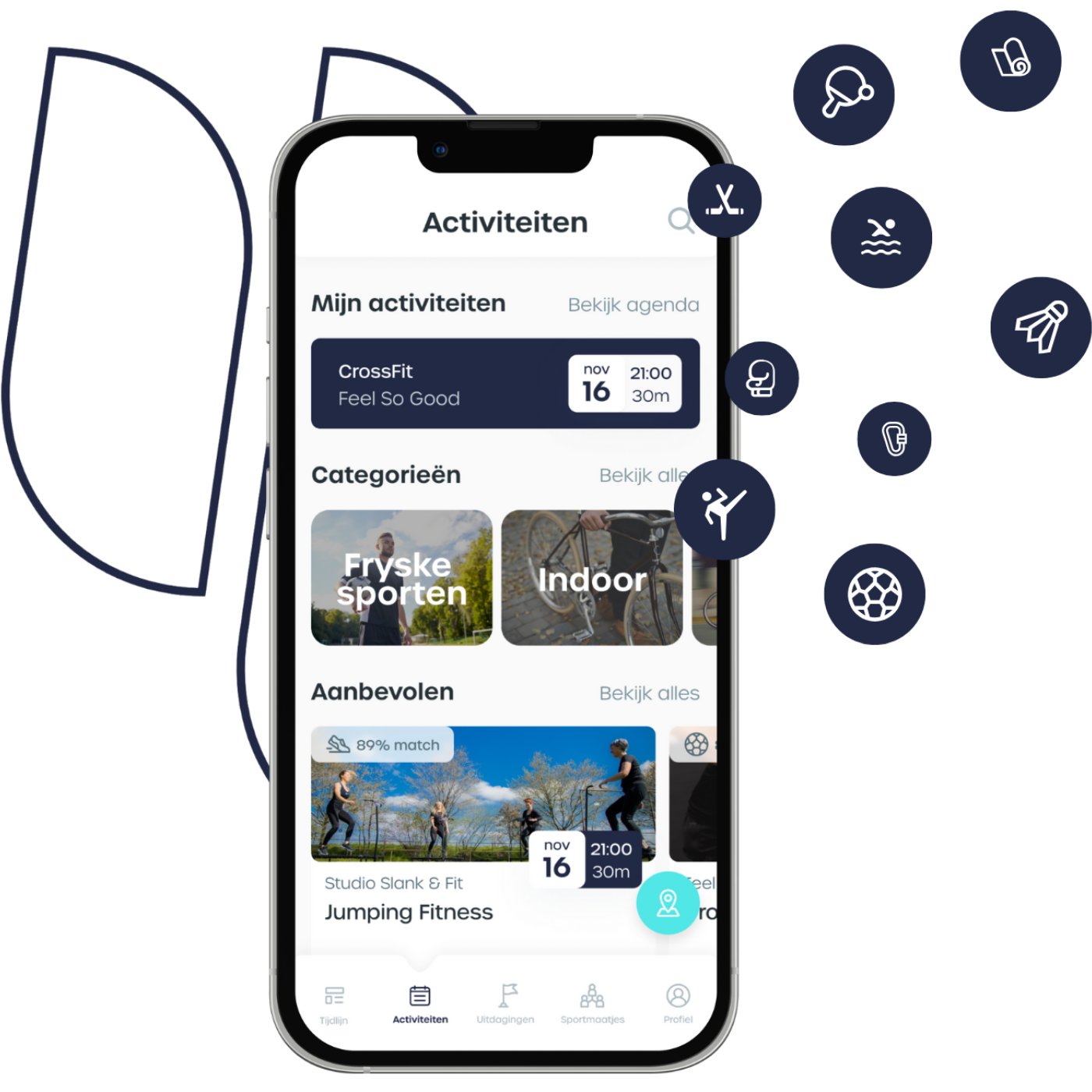 - Word via de tijdlijn geïnspireerd en geactiveerd om yn beweging te komen en vind nieuwe sport- en cultuurmaatjes
